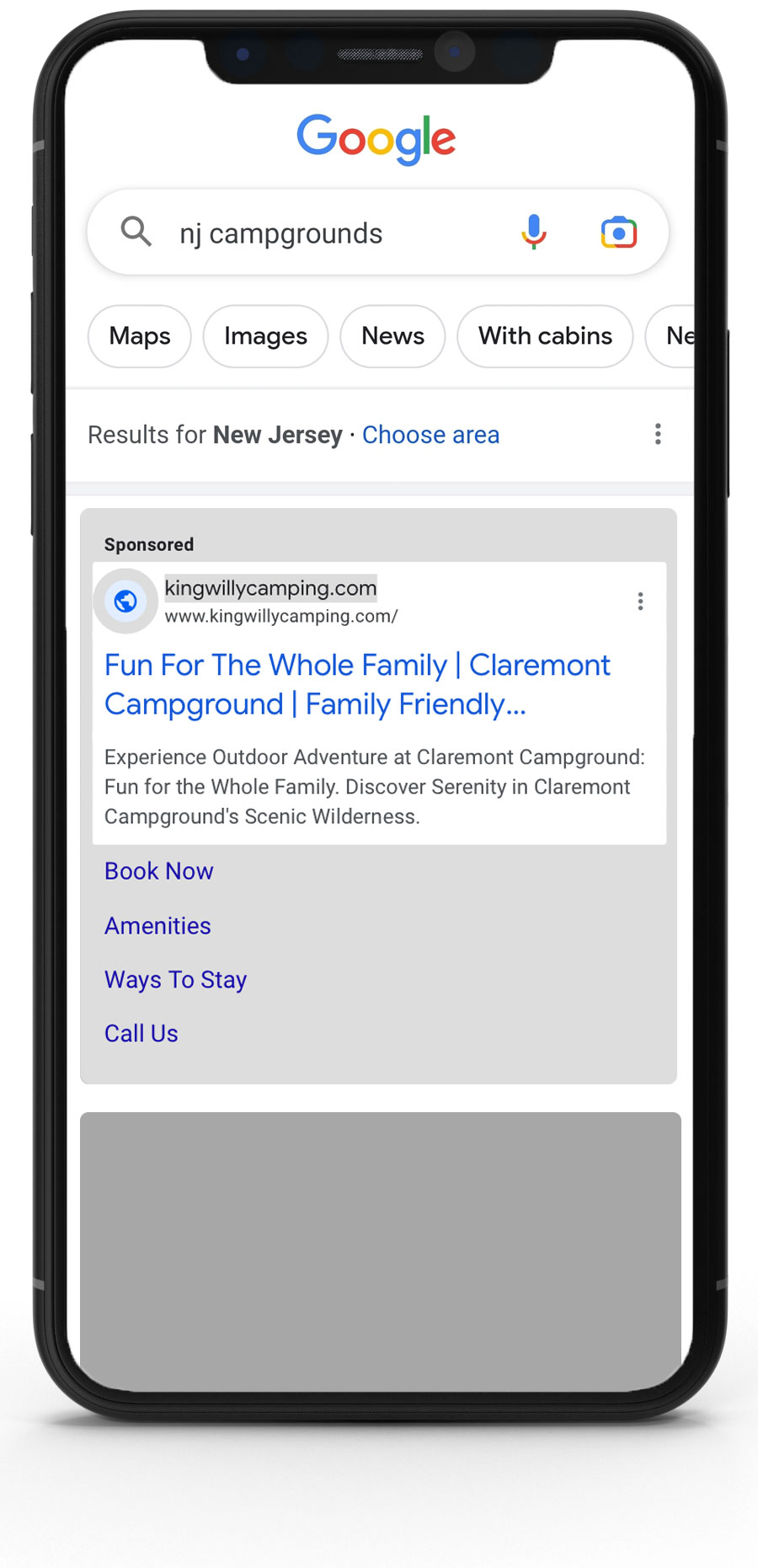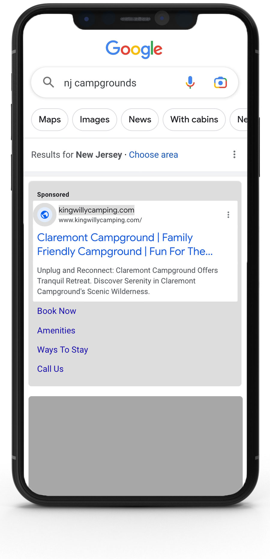 A successful campground marketing strategy needs to include Google Ads. We quickly convert clicks into conversions and bookings by tailoring targeted keywords and messages to reach potential campers. King Willy Camping has the expertise to develop an effective campaign for your business that can drive relevant traffic to your website from Google Ads.